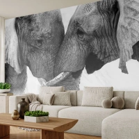 Fototapete Standard Eco - Zwei Elefanten mit ineinander verschlungenen Rüsseln in einer zärtlichen Geste der Nähe - 100x70cm - Herzliches Geständnis - Moderne Wanddekoration für Wohnzimmer und Schlafzimmer ARTTOR