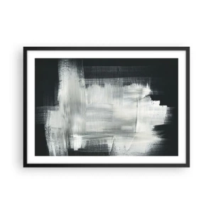 Poster in einem schwarzem Rahmen - Weiße abstrakte Striche auf dunklem Hintergrund - 70x50cm - Vertikal und horizontal gewebt - Moderne Wanddekoration für Wohnzimmer und Schlafzimmer ARTTOR