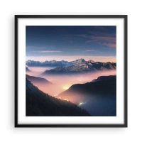 Poster in einem schwarzem Rahmen - Licht in den Tälern - 60x60 cm