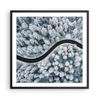 Poster in einem weißen Rahmen - Durch den Winterwald - 50x50 cm