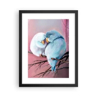 Bild auf Leinwand - Leinwandbild - Zwei verliebte Vögel auf einem Ast auf rosa Hintergrund - 100x70cm - Was kann ich hier hinzufügen? ... - Moderne Wanddekoration für Wohnzimmer und Schlafzimmer ARTTOR