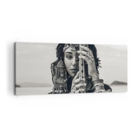 Bild auf Leinwand - Leinwandbild - Porträt einer Frau mit ethnischem Schmuck, die ein Instrument in der Hand hält - 160x50cm - Die Musik des Orients selbst - Moderne Wanddekoration für Wohnzimmer und Schlafzimmer ARTTOR