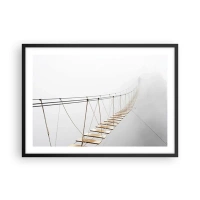 Poster in einem schwarzem Rahmen - Eine Hängebrücke im Nebel aus minimalistischer Perspektive - 70x50cm - Wohin wird es dich führen? - Moderne Wanddekoration für Wohnzimmer und Schlafzimmer ARTTOR