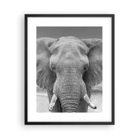 Glasbild - Bild auf glas - Schwarz-Weiß-Porträt eines Elefanten in der Savanne - 120x80cm - Willkommen in meiner Welt - Moderne Wanddekoration für Wohnzimmer und Schlafzimmer ARTTOR