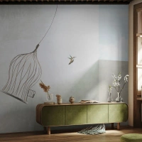 Selbstklebende Fototapete Deluxe Sticker - In seinem Element - Abstraktion, Vogel, Vogelkäfig - 200x140 cm