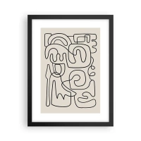 Glasbild - Bild auf glas - Schwarze abstrakte Linien bilden ein komplexes Muster auf Beige - 100x70cm - Folge der Spur - Moderne Wanddekoration für Wohnzimmer und Schlafzimmer ARTTOR