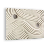 Glasbild - Bild auf glas - Minimalistischer Sand mit Steinen und geometrischen Mustern - 70x50cm - Ein Hauch von Wärme - Moderne Wanddekoration für Wohnzimmer und Schlafzimmer ARTTOR