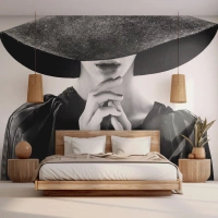Poster - Stilvolle Frau mit großem Hut in Schwarz-Weiß-Tönen - 100x70cm - Versteckte Schönheit - Moderne Wanddekoration für Wohnzimmer und Schlafzimmer ARTTOR