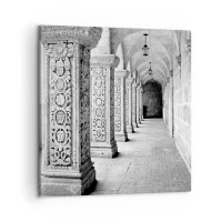 Bild auf Leinwand - Leinwandbild - Historische Säulen in einer monochromen Aufnahme - 100x70cm - Und wo geht’s hin...? - Moderne Wanddekoration für Wohnzimmer und Schlafzimmer ARTTOR
