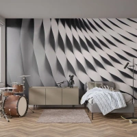 Fototapete Standard Eco - Moderne Struktur mit wellenförmigem Grundriss in Schwarz und Weiß - 100x70cm - Auf der Oberfläche der Wellen - Moderne Wanddekoration für Wohnzimmer und Schlafzimmer ARTTOR