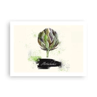 Poster - Aquarell Artischocke mit Text auf hellem Hintergrund mit grünen Akzenten - 100x70cm - Eviva-Gemüse! - Moderne Wanddekoration für Wohnzimmer und Schlafzimmer ARTTOR