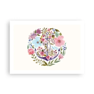 Poster - Ein Anker, umgeben von Aquarellblumen auf hellem Hintergrund - 100x70cm - Guter Traum eines Seemanns - Moderne Wanddekoration für Wohnzimmer und Schlafzimmer ARTTOR