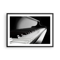 Poster in einem schwarzem Rahmen - Klaviertasten in einer eleganten Schwarz-Weiß-Aufnahme - 70x50cm - Harmonie von Formen und Farben - Moderne Wanddekoration für Wohnzimmer und Schlafzimmer ARTTOR