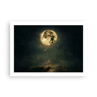 Poster - Mann mit dem Mond vor dem Sternenhimmel - 100x70cm - Der Mann, der den Mond gestohlen hat - Moderne Wanddekoration für Wohnzimmer und Schlafzimmer ARTTOR