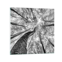 Wanduhr - Glasuhr - Perspektive von Bäumen in einem Wald von unten gesehen in Grautönen - 30x30cm - Rennen zum Licht - Moderne Wanddekoration für Wohnzimmer und Schlafzimmer ARTTOR