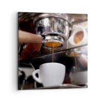 Bild auf Leinwand - Leinwandbild - Nahaufnahme einer Kaffeemaschine, die einen frischen Espresso zubereitet - 100x70cm - Gute Zeit des Tages - Moderne Wanddekoration für Wohnzimmer und Schlafzimmer ARTTOR