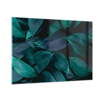 Glasbild - Bild auf glas - Dichte grüne Blätter auf dunklem Hintergrund - 100x70cm - Grün in sich selbst - Moderne Wanddekoration für Wohnzimmer und Schlafzimmer ARTTOR