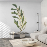 Fototapete Standard Eco - Aquarellzweig mit grünen Blättern und einem goldenen Akzent - 100x70cm - Alles was gut ist - Moderne Wanddekoration für Wohnzimmer und Schlafzimmer ARTTOR
