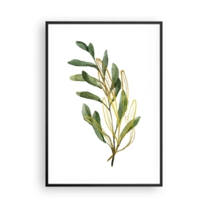 Poster in einem schwarzem Rahmen - Grüner Zweig mit Blättern auf weißem Hintergrund - 100x70cm - Alles was gut ist - Moderne Wanddekoration für Wohnzimmer und Schlafzimmer ARTTOR