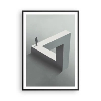 Poster in einem schwarzem Rahmen - Eine Figur, die auf einem Penrose-Dreieck in Grautönen steht. - 100x70cm - Es ist also doch möglich - Moderne Wanddekoration für Wohnzimmer und Schlafzimmer ARTTOR