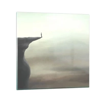 Wanduhr - Glasuhr - Silhouette einer Figur am Rand einer Klippe in einer nebligen Landschaft - 30x30cm - Nach oben, natürlich! - Moderne Wanddekoration für Wohnzimmer und Schlafzimmer ARTTOR
