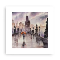 Poster - Romantischer Blick auf eine Brücke mit einem Regenschirm vor der Kulisse einer abendlichen Stadt - 100x70cm - Leute verändern sich nicht - Moderne Wanddekoration für Wohnzimmer und Schlafzimmer ARTTOR