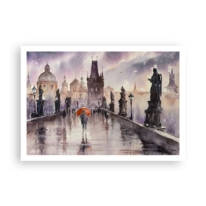 Poster - Romantischer Blick auf eine Brücke mit einem Regenschirm vor der Kulisse einer abendlichen Stadt - 100x70cm - Leute verändern sich nicht - Moderne Wanddekoration für Wohnzimmer und Schlafzimmer ARTTOR