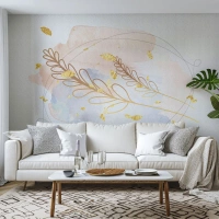 Fototapete Standard Eco - Goldene Blätter und Zweige vor einem pastellfarbenen Aquarellhintergrund - 100x70cm - Goldenr Hauch - Moderne Wanddekoration für Wohnzimmer und Schlafzimmer ARTTOR