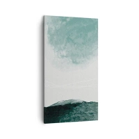 Bild auf Leinwand - Leinwandbild - Eine zarte abstrakte Komposition in Grüntönen mit subtilen Formen auf hellem Hintergrund. - 100x70cm - Begegnung mit Nebel - Moderne Wanddekoration für Wohnzimmer und Schlafzimmer ARTTOR