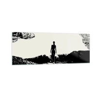 Glasbild - Bild auf glas - Schwarz-weiße Silhouette einer Frau in einer Höhle gegen den Himmel - 140x50cm - Neuer Blick - Moderne Wanddekoration für Wohnzimmer und Schlafzimmer ARTTOR