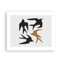 Poster in einem Rahmen aus heller Eiche - Schwalbenspaß - 50x50 cm