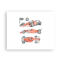 Poster - Ein roter Rennwagen mit einer Zielflagge - 100x70cm - Dem Traum folgen - Moderne Wanddekoration für Wohnzimmer und Schlafzimmer ARTTOR