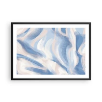 Poster in einem schwarzem Rahmen - Abstrakte Pinselstriche in Blau- und Beigetönen - 70x50cm - Blaue Wellen - Moderne Wanddekoration für Wohnzimmer und Schlafzimmer ARTTOR