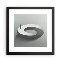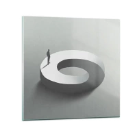 Wanduhr - Glasuhr - Eine schwarze Silhouette eines Mannes, der auf einer weißen Spiralbahn steht. - 30x30cm - Und wie soll man davon klug werden - Moderne Wanddekoration für Wohnzimmer, Küche und Schlafzimmer ARTTOR