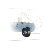 Glasbild - Bild auf glas - Abstrakte Komposition in Blau- und Goldtönen - 70x50cm - Blau-goldene Fantasie - Moderne Wanddekoration für Wohnzimmer und Schlafzimmer ARTTOR
