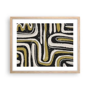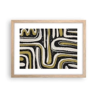 Poster in einem schwarzem Rahmen - Abstraktes Muster in Schwarz, Weiß und Gold - 100x70cm - Komposition: Straßen und Gassen - Moderne Wanddekoration für Wohnzimmer und Schlafzimmer ARTTOR