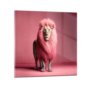 Wanduhr - Glasuhr - Ein Löwe mit einer intensiv rosa Mähne auf einem Hintergrund der gleichen Farbe - 30x30cm - Und du hast keine Angst mehr - Moderne Wanddekoration für Wohnzimmer, Küche und Schlafzimmer ARTTOR