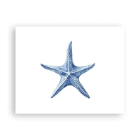 Poster - Blauer Seestern auf weißem Hintergrund im minimalistischen Stil - 100x70cm - Stern des Meeres - Moderne Wanddekoration für Wohnzimmer und Schlafzimmer ARTTOR