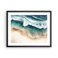 Poster in einem schwarzem Rahmen - Blick auf den Strand und die Meereswellen in Türkistönen - 100x70cm - Das ewige Treffen - Moderne Wanddekoration für Wohnzimmer und Schlafzimmer ARTTOR