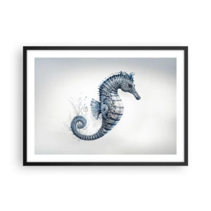 Poster in einem schwarzem Rahmen - Seepferdchen in Blautönen mit Aquarelldetails - 70x50cm - Subtiler Witz der Natur - Moderne Wanddekoration für Wohnzimmer und Schlafzimmer ARTTOR