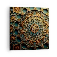 Bild auf Leinwand - Leinwandbild - Ein goldenes Mandala auf türkisfarbenem Hintergrund mit vielen Details. - 100x70cm - In arabischer Atmosphäre - Moderne Wanddekoration für Wohnzimmer und Schlafzimmer ARTTOR