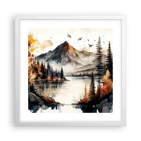 Poster in einem weißen Rahmen - Goldener Herbst in den Bergen - 40x40 cm