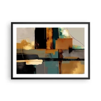 Poster in einem schwarzem Rahmen - Abstrakte Komposition mit goldenen und türkisfarbenen Elementen - 70x50cm - Abstraktion – Licht und Schatten - Moderne Wanddekoration für Wohnzimmer und Schlafzimmer ARTTOR