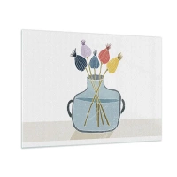 Glasbild - Bild auf glas - Dekorative Mohnköpfe in einer Kanne im grafischen Stil - 70x50cm - Es ist mucksmäuschenstill - Moderne Wanddekoration für Wohnzimmer und Schlafzimmer ARTTOR