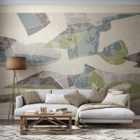 Fototapete Premium Canvas - Komposition hinter dem Glas - Formen, Abstraktion, Pastell - 350x256 cm
