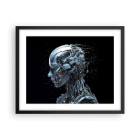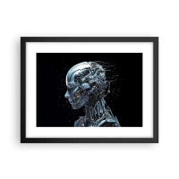 Poster in einem schwarzem Rahmen - Futuristisches Porträt eines Cyborgs im Industriestil auf schwarzem Hintergrund. - 100x70cm - Technologie ist eine Frau - Moderne Wanddekoration für Wohnzimmer und Schlafzimmer ARTTOR