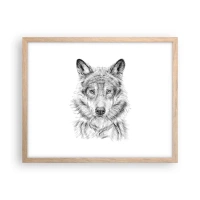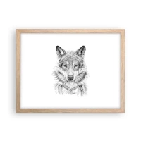 Poster in einem schwarzem Rahmen - Skizze eines Wolfskopfes im monochromen Stil auf weißem Hintergrund - 100x70cm - Ein geborener Anführer - Moderne Wanddekoration für Wohnzimmer und Schlafzimmer ARTTOR