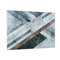 Glasbild - Bild auf glas - Geometrische Abstraktion in kühlen Tönen mit dunkelgrünem Akzent - 100x70cm - Anspruchsvolle Eleganz der Geometrie - Moderne Wanddekoration für Wohnzimmer und Schlafzimmer ARTTOR