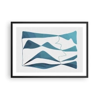 Poster in einem schwarzem Rahmen - Abstrakte Formen in Blautönen auf weißem Hintergrund - 70x50cm - Abstraktion: türkisfarbene Verbindung - Moderne Wanddekoration für Wohnzimmer und Schlafzimmer ARTTOR