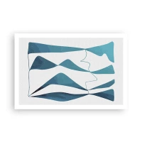 Poster - Abstrakte Formen in Blautönen auf weißem Hintergrund - 100x70cm - Abstraktion: türkisfarbene Verbindung - Moderne Wanddekoration für Wohnzimmer und Schlafzimmer ARTTOR